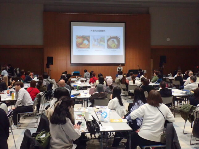 会場では、「スナック都ろ美」の加藤さくらさんによるトークショーが行われました。同じように障害を持つ子供さんを育てているお母さんたちみな真剣にお話を聞いていました。他にも食べることや飲み込むことに配慮された洋菓子、和菓子、お酒など小さい子供から高齢者の方まで楽しめる内容の食品の試食・展示即売がありました。こちらは毎回とても好評です。安全に食べるための工夫がされているだけでなく、見た目や味にもこだわりがあり皆さん「美味しい」と喜ばれていました。食をテーマにした音楽の時間もあり、会場全体がとてもあたたかい雰囲気に包まれていました。