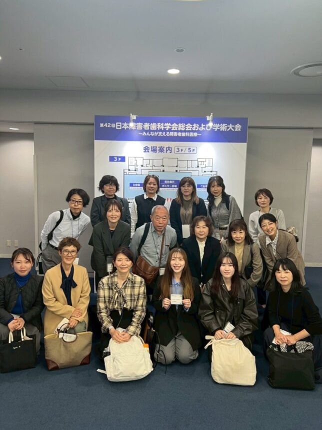 11月1日、2日に大阪国際会議場で日本障害者歯科学会総会および学術大会があり、私は初めて学会に参加させていただきました。会場や参加者の多さ、規模の大きさに驚きました。普段助手として勤務しているので参加しても良いのだろうか、理解できるのだろうかと思っていました。難しい内容のものもありましたが、学生へのアンケートを元にしたものなど、興味深く見聞きすることができました。発表の内容や方法も多岐にわたっていました。又、5人のスタッフが発表している姿は頼もしかったです。普段の勤務とは違った経験をすることができる大変良い機会となりました。