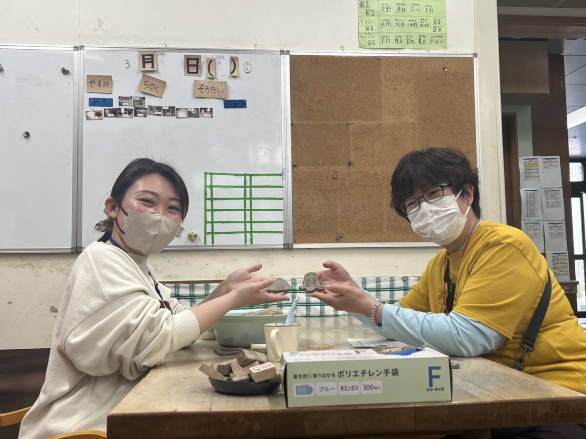 陶器マグネット作り体験!おにぎり(左)とおばけ(右)をモチーフに作りました。