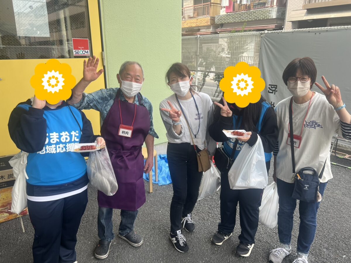ボランティアの尼崎小田高校の生徒さんとパチリ✨院長はフランクフルト係2年目で焼くのが上達しました。